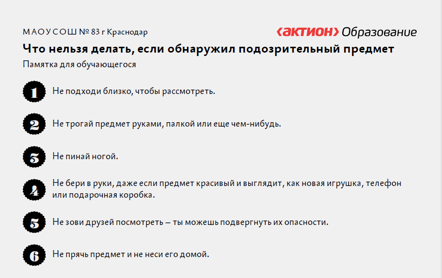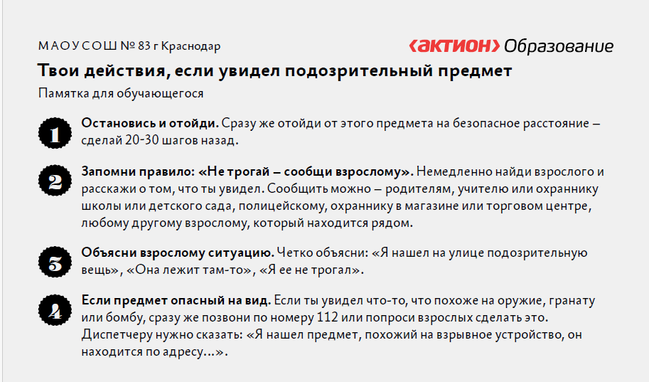 Что делать: Если вы нашли что-то необычное, немедленно сообщите об этом взрослым или родителям.