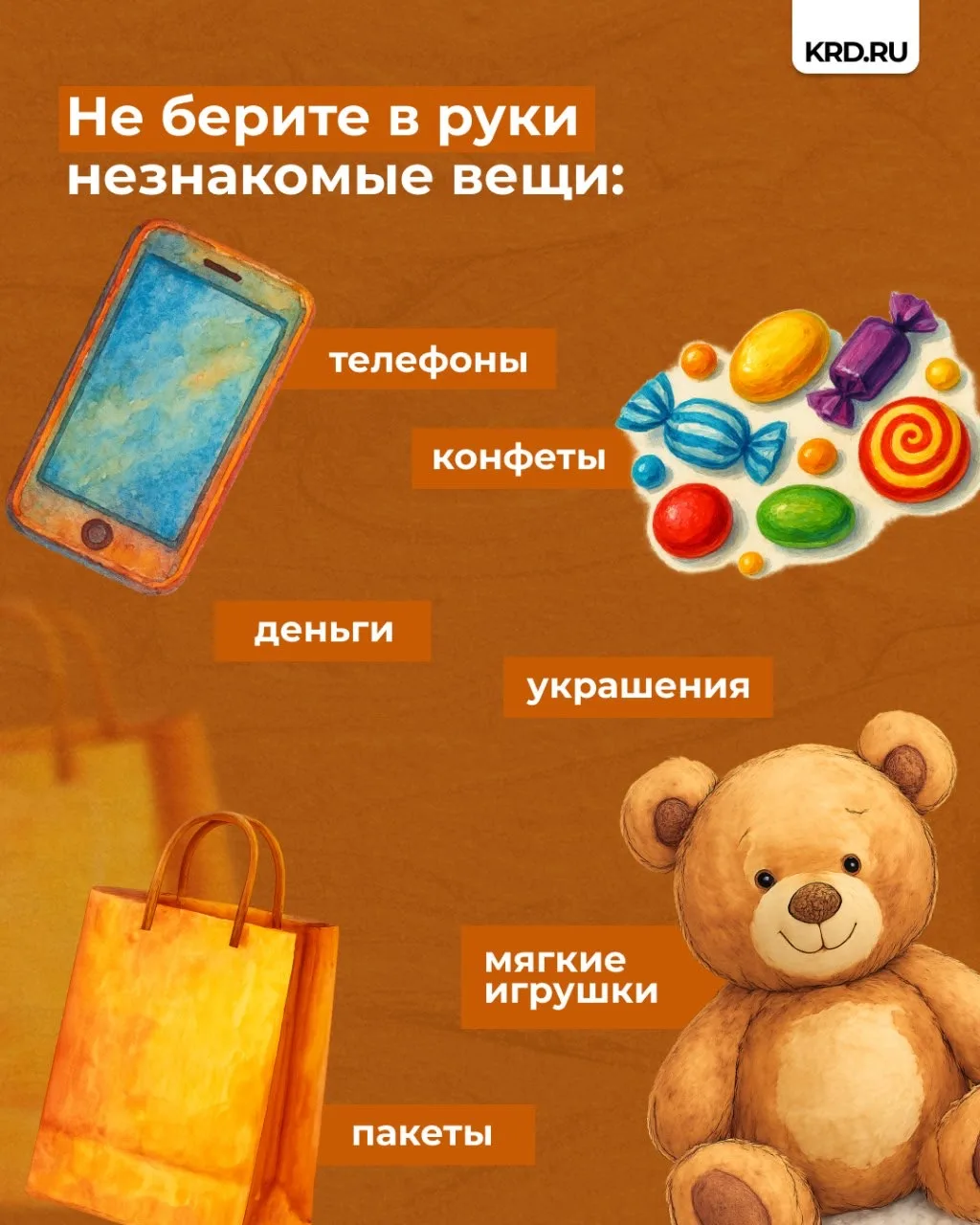 Скрытая угроза: За обычным предметом, таким как деньги, игрушка или пакет, может скрываться взрывное устройство.